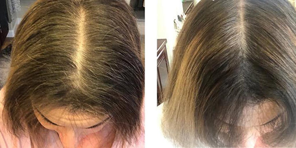 If I hadnt taken the before photo, I would just be thinking my hair felt healthier and that I now have, what I assume is, a normal amount of hair loss. Honestly, just a few strand now and then when I wash my hair. I never did experience any of the shedding that I heard was possible before the new growth started. Which was nice but I wasnt sure I was experiencing much new hair growth either. But holy smokes. do you see the difference in my part!
